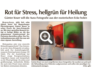 Günter Knarr, Auraphotograf aus Regensburg. Er ist Heilpraktiker für Physiotherapie und selbstständig seit 35 Jahren. Seine Arbeit mit der Kamera und seinen Patienten macht er seit 15 Jahren. Dazu zählen u.a. über mehr als 1.000 Lichtfeldspektralanalysen, Matrix Energetics Anwendungen, Seminare und Vorträge.